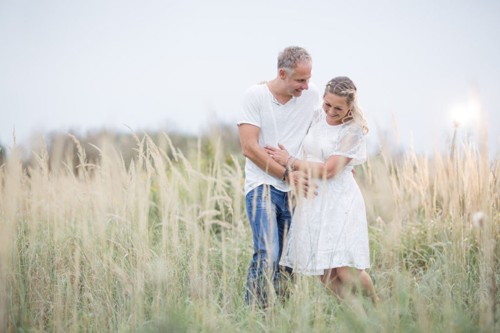 Flexible Setgestaltung – Bei einem Babybauch Shooting im Freien sind der Fantasie für das Setting so gut wie keine Grenzen gesetzt. So können weitere Personen oder Haustiere einfacher eingebunden werden, wenn du dich z.B. für ein Shooting mit dem Partner entscheiden solltest.