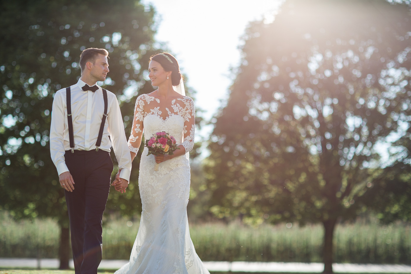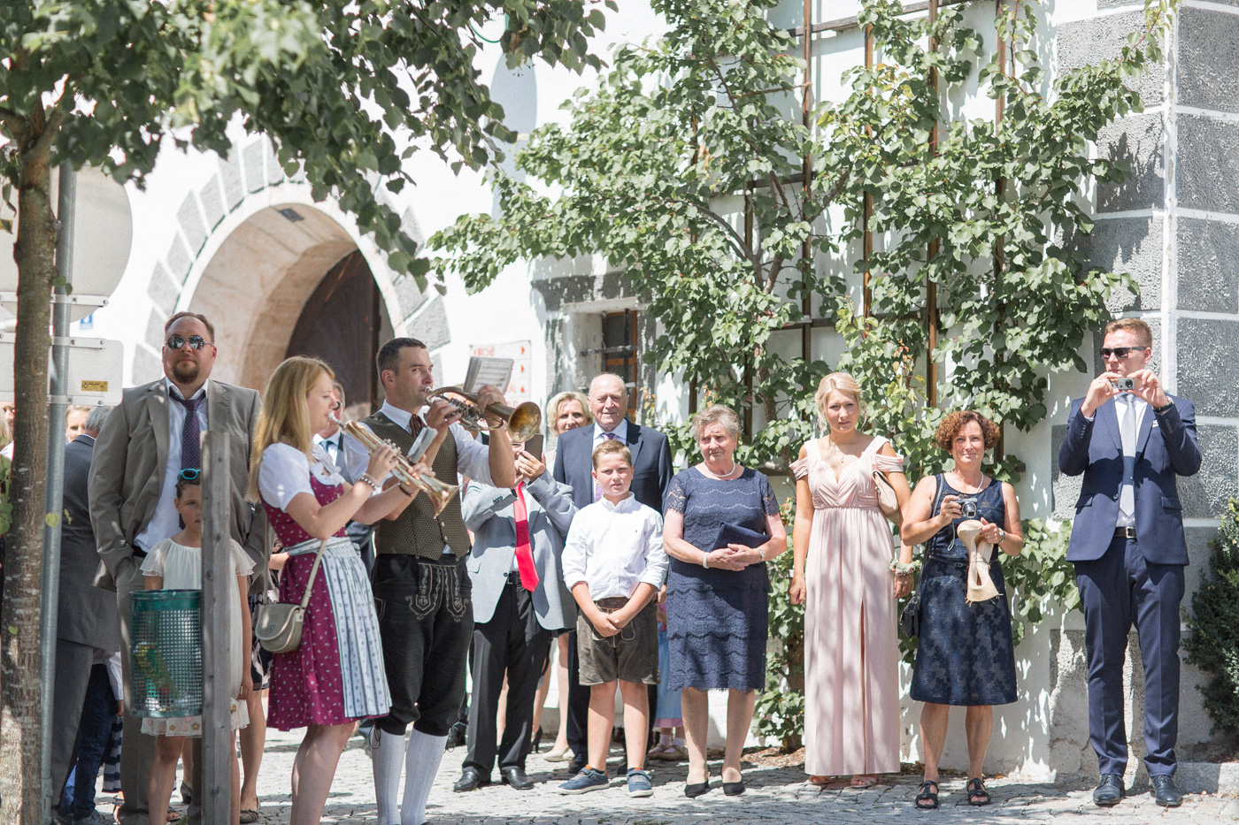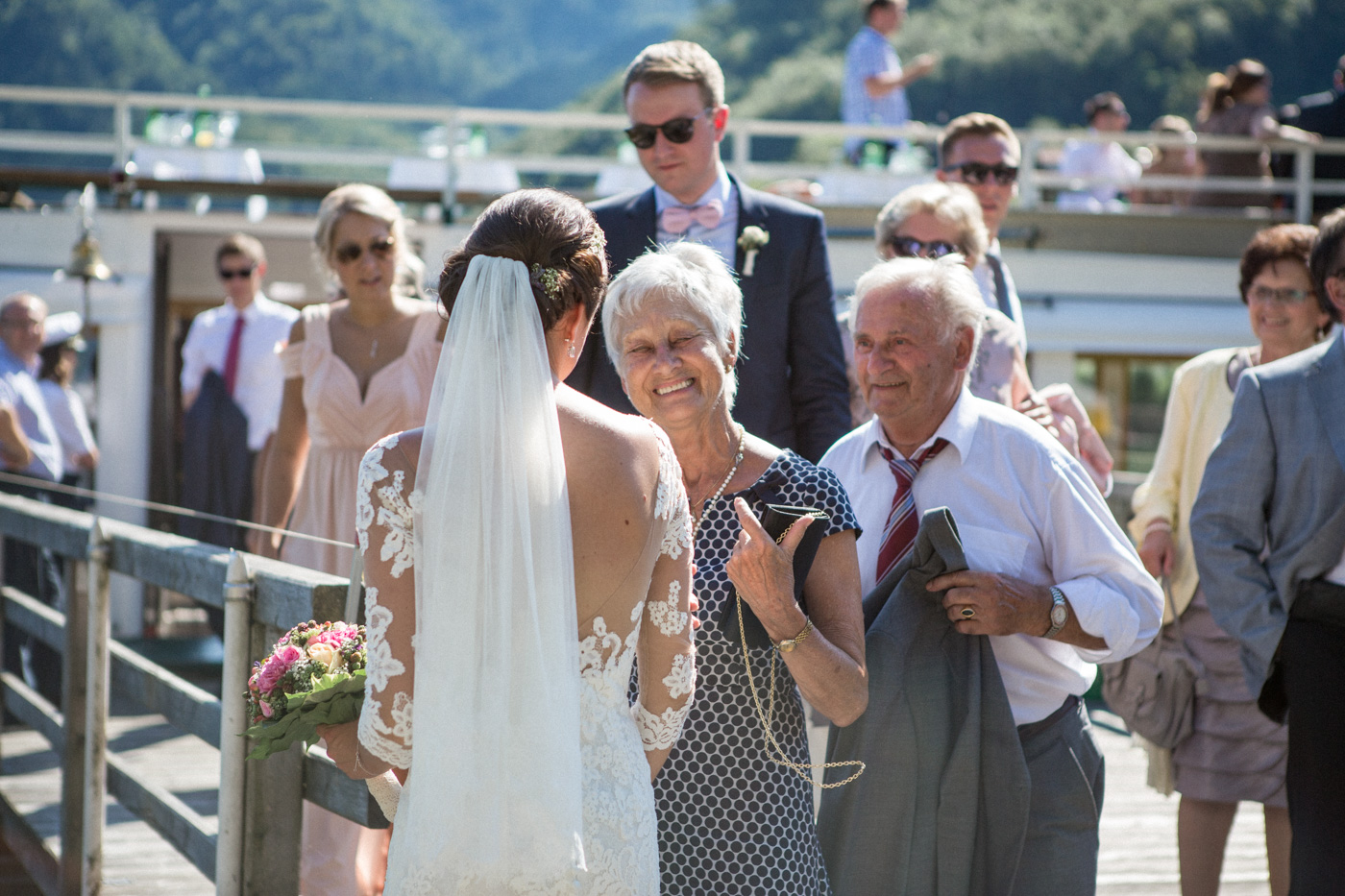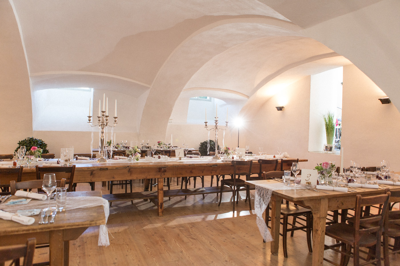 Während sich vor allem Katharina zu Hause so richtig fein und schick machte, wurden schon die Detailfotos in der Kamera festgehalten. Auf der anschließenden Fahrt nach Traunkirchen in die Kirche konnte man noch einmal ein wenig in sich gehen und vor allem die Ruhe für den anstehenden großen Moment genießen. Die Kirche war sehr berührend und emotional. Nach der Messe ging es zum Steg mit herrlichen Blick auf den See und auf den Traunstein und anschließend auf ein Schiff. Die Schifffahrt von einer Stunde wurde mit einem geselligen und schönen Sektempfang begonnen. Als das Brautpaar und die Gäste wieder ankamen, ging es dann nach Vorchdorf zum Schloss Eggenberg. Eine wunderschöne Kulisse und eine noch schönere Dekoration erwartete vor allem das Brautpaar. Die perfekte Location für Familienfotos. Diese wurden bei wunderschönem Sonnenschein natürlich auch geschossen. Eine solche Location muss natürlich auch direkt für romantische Bilder von Kathi und Patrick genutzt werden. Entsprechend haben wir auch gleich das Paarshooting realisiert. Doch dann sollten Brautpaar und Gäste erst einmal Zeit zum Feiern und essen haben. Das Schloss Eggenberg ist für Naturliebhaber eine hervorragende Kulisse. Alles ist grün und einfach ruhig. Die idealen Bedingungen für einen gemeinsamen Start in die Ehe. Aber auch Liebhaber eines kühlen Bieres werden in der hauseigenen Brauerei sicherlich auf die Kosten kommen. Ein Highlight das Schloss Eggenberg bietet, ist der Bierfassanstich für Braut und Bräutigam. Romantisch und dennoch sehr zünftig lässt es sich auf dem Schloss Eggenberg auf jeden Fall feiern.