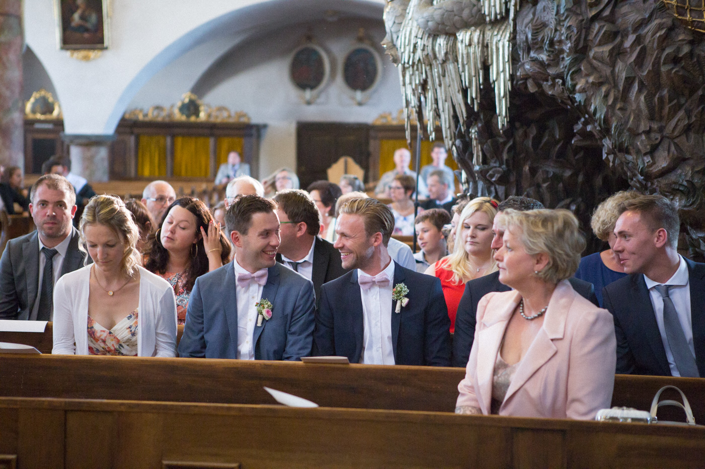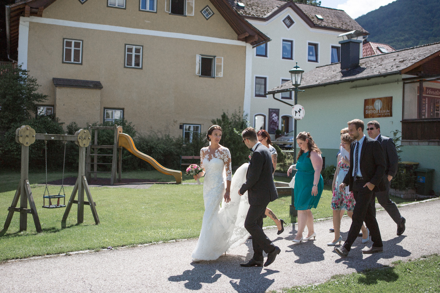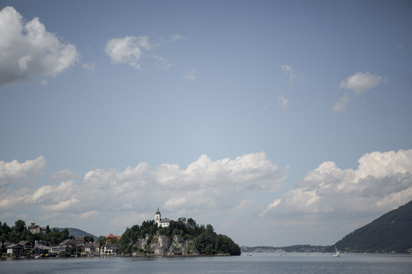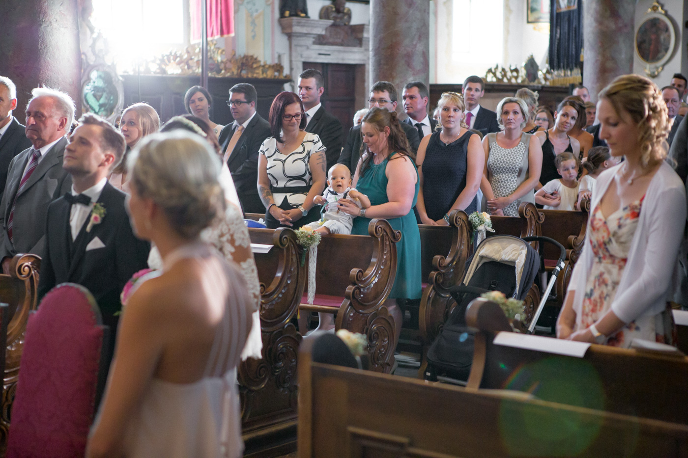 Während sich vor allem Katharina zu Hause so richtig fein und schick machte, wurden schon die Detailfotos in der Kamera festgehalten. Auf der anschließenden Fahrt nach Traunkirchen in die Kirche konnte man noch einmal ein wenig in sich gehen und vor allem die Ruhe für den anstehenden großen Moment genießen. Die Kirche war sehr berührend und emotional. Nach der Messe ging es zum Steg mit herrlichen Blick auf den See und auf den Traunstein und anschließend auf ein Schiff. Die Schifffahrt von einer Stunde wurde mit einem geselligen und schönen Sektempfang begonnen. Als das Brautpaar und die Gäste wieder ankamen, ging es dann nach Vorchdorf zum Schloss Eggenberg. Eine wunderschöne Kulisse und eine noch schönere Dekoration erwartete vor allem das Brautpaar. Die perfekte Location für Familienfotos. Diese wurden bei wunderschönem Sonnenschein natürlich auch geschossen. Eine solche Location muss natürlich auch direkt für romantische Bilder von Kathi und Patrick genutzt werden. Entsprechend haben wir auch gleich das Paarshooting realisiert. Doch dann sollten Brautpaar und Gäste erst einmal Zeit zum Feiern und essen haben. Das Schloss Eggenberg ist für Naturliebhaber eine hervorragende Kulisse. Alles ist grün und einfach ruhig. Die idealen Bedingungen für einen gemeinsamen Start in die Ehe. Aber auch Liebhaber eines kühlen Bieres werden in der hauseigenen Brauerei sicherlich auf die Kosten kommen. Ein Highlight das Schloss Eggenberg bietet, ist der Bierfassanstich für Braut und Bräutigam. Romantisch und dennoch sehr zünftig lässt es sich auf dem Schloss Eggenberg auf jeden Fall feiern.